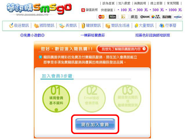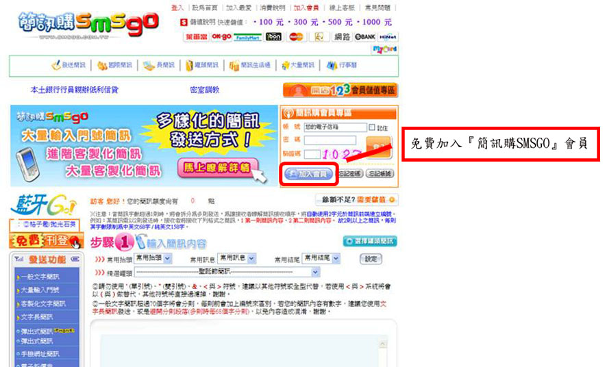 一、1.免費加入『簡訊購SMSGO』會員 | ||