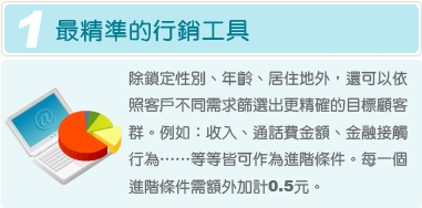 ※ 精準行銷簡訊屬特殊條件,篩選條件名單請於3個工作天前提出申請(不包含例假日)